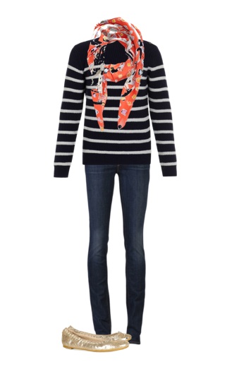 The Basics: Feeling inspired by the ever fashionable and regal Kate Middleton, we’re loving navy. It’s the new black! Pick up fall’s essential 3rd piece, a blazer, in a classic schoolboy navy. It goes with everything! A tee, a scarf, and a pair of jeans… over a dress… a feminine top and a pencil skirt. The possibilities are endless. You can also go classic with a navy striped sweater. Paired with a printed scarf, stripes are our favorite way to try pattern mixing.
