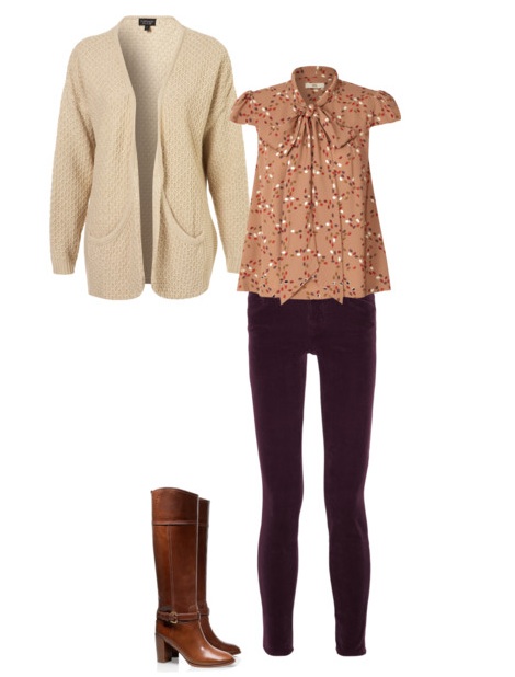 Casual: We’re always talking about how to take your white denim into fall. A lace or textured sweater in oxblood, leopard flats, and a parka in olive are quintessential fall.